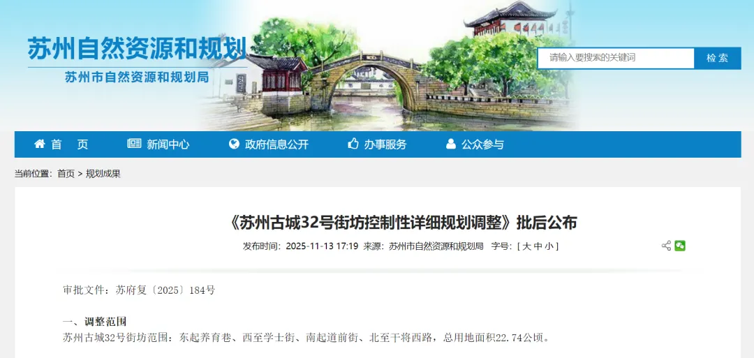 苏州古城32号街坊控制性详细规划调整