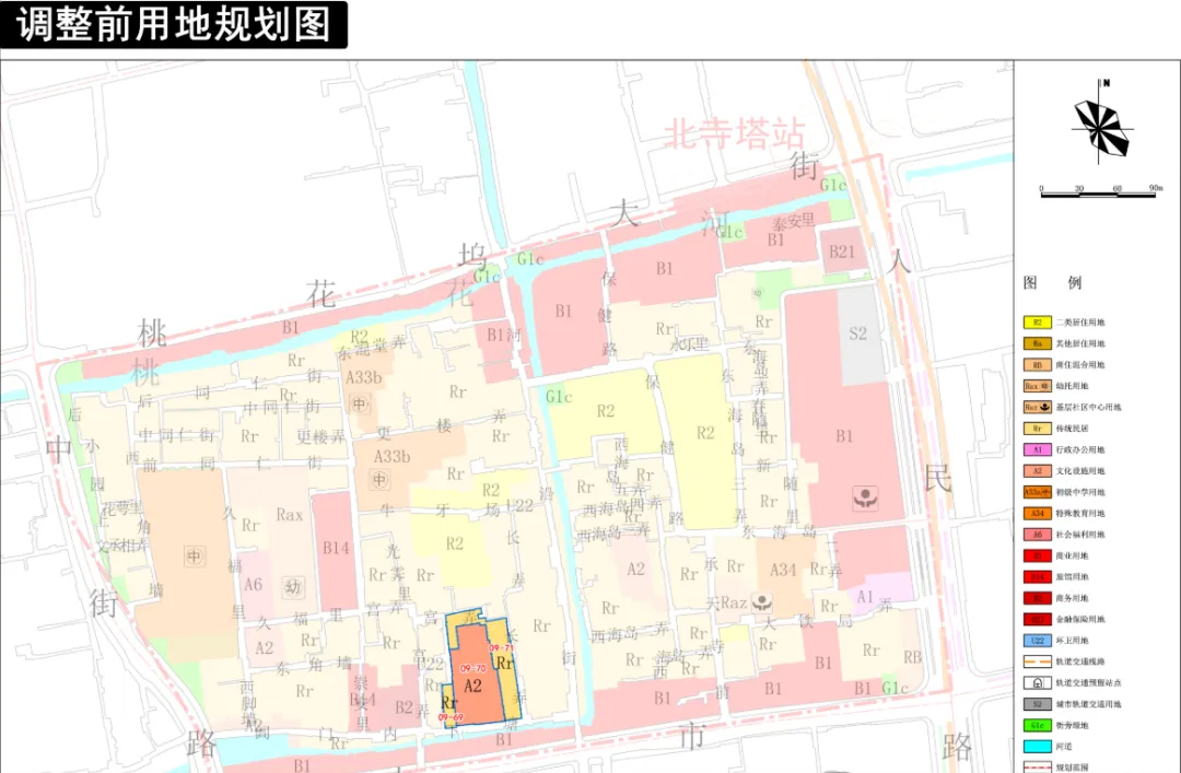 综合考量地块的实际状况以及权属情形,对相关地块进行了优化调整。其中,09 - 70地块原本为文化设施用地(A2),现整体转变为文化设施与商业服务业混合用地(A2 + B)。与此同时,该地块还与相邻的09 - 69、09 - 71地块(原属传统民居用地(Rr))进行局部优化整合,重新调整了用地边界。随着用地性质和边界的改变,地块控制指标也相应作出调整。