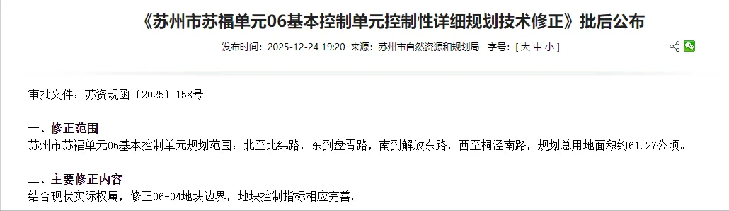 备受关注的《苏州市苏福单元06基本控制单元控制性详细规划技术修正》已完成审批流程,现正式对外公布。