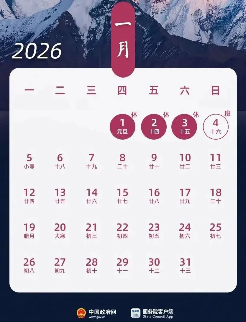 根据国务院放假通知,现将我园2026年元旦放假安排通知如下: