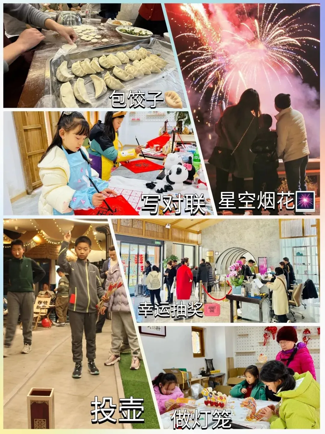 “辞旧·燃忧”篝火仪式:参与极具仪式感的篝火盛典,寓意添“财”加“薪”。可围炉享受小火锅、烧烤,体验包饺子、自助K歌、棋牌游戏,在温暖中共度团圆夜。