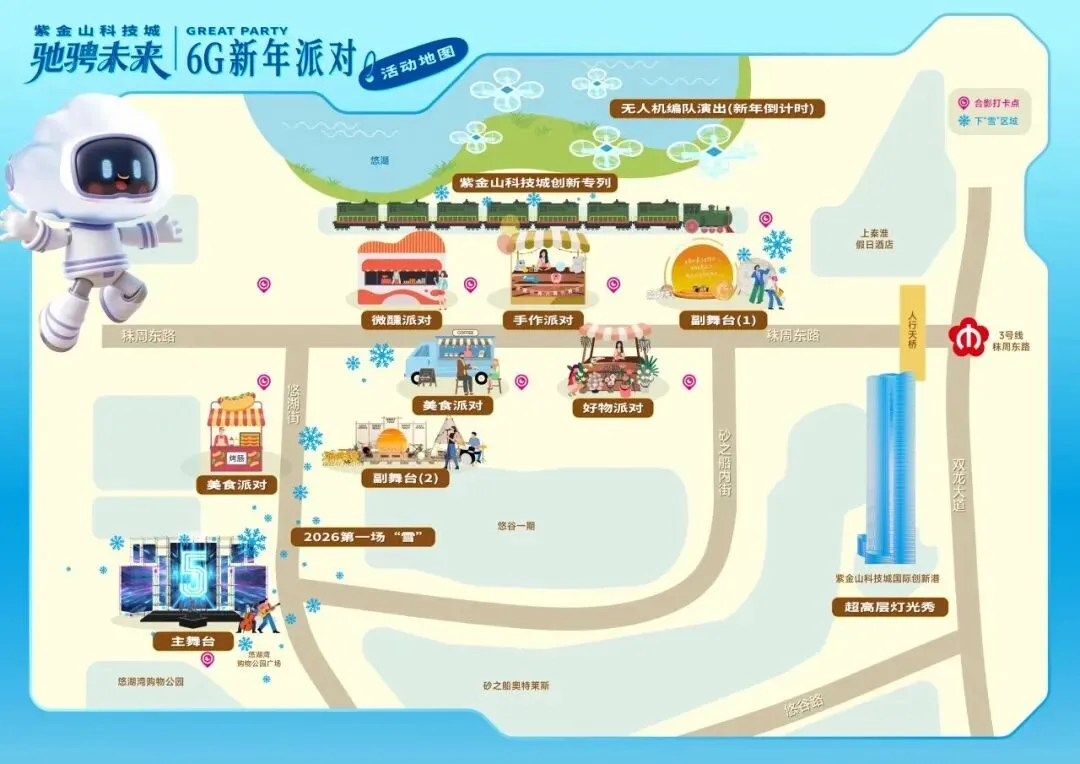 150台下雪机全域覆盖,紫金山科技城漫天飞雪,“南京” 秒变 “金陵”,牵手拍照、雪中倒数,浪漫值直接拉满~