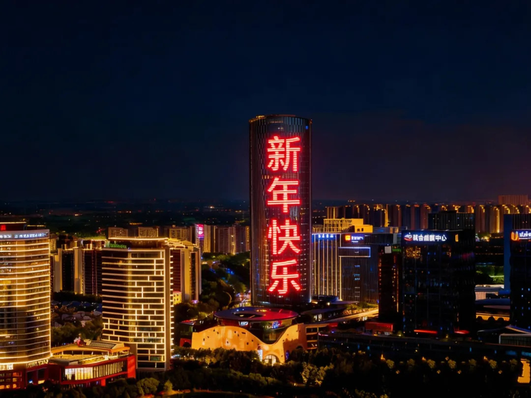 187.6米的江宁第一高楼——紫金山科技城国际创新港,化身光影焦点,璀璨灯光交织闪烁,“2026新年快乐”的字样点亮江宁夜空,与现场众人一起倒数迎新。