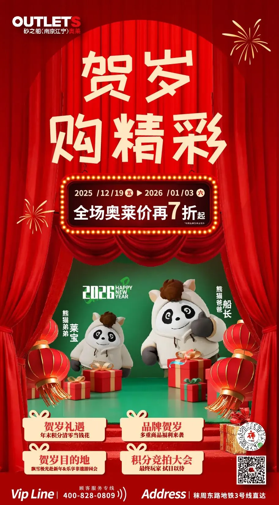 来这里开启购物模式,年末超值福利让你满载而归!12月19日-1月3日,砂之船(南京江宁)奥莱年末重磅优惠来袭: