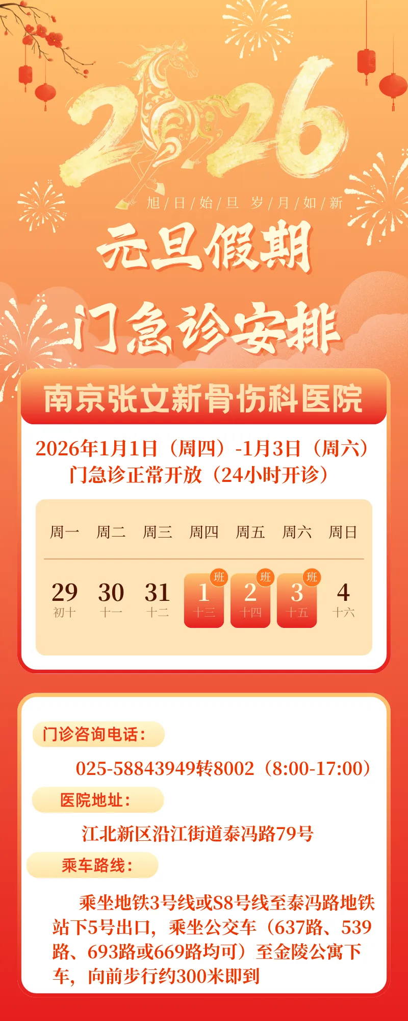 >南京张文新骨伤科医院元旦假期门急诊工作安排