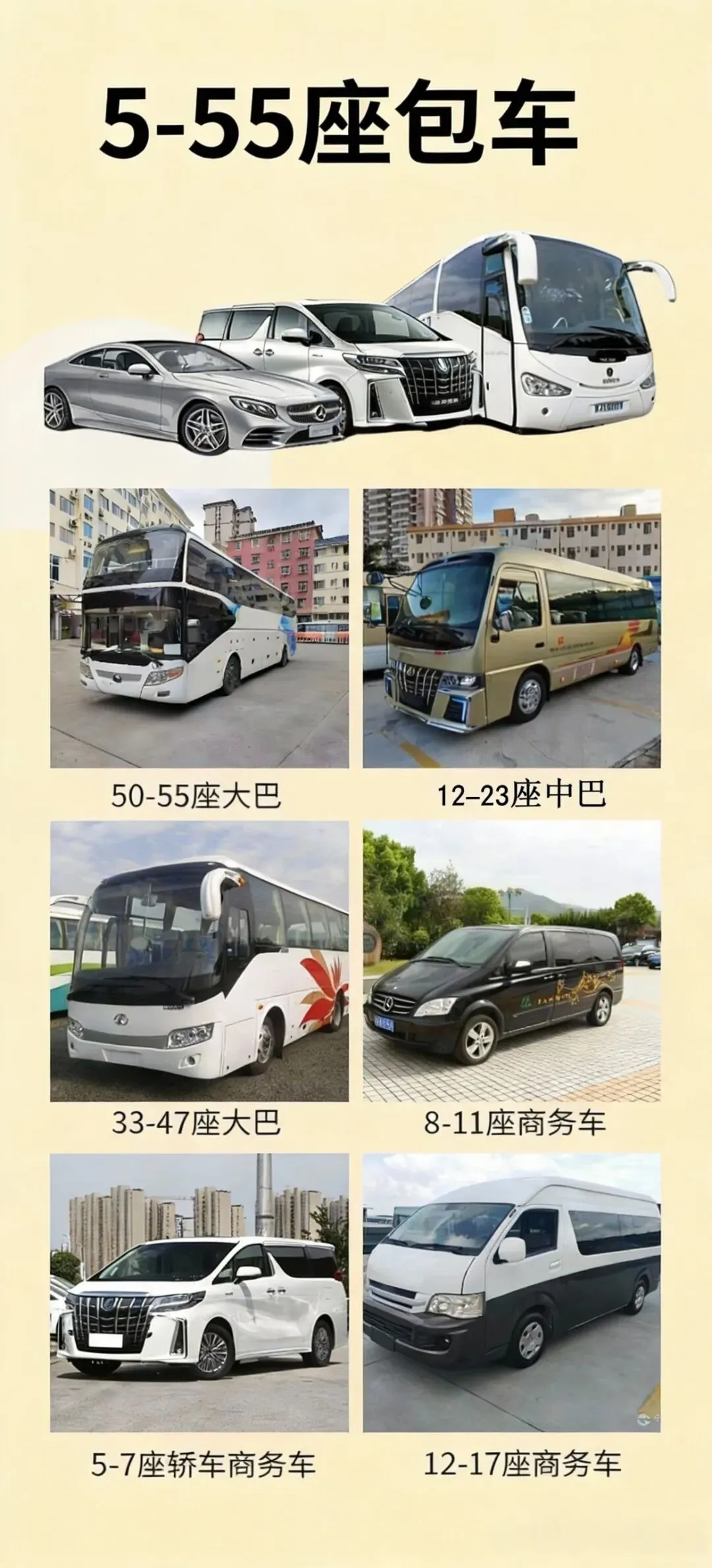 无论你是个人出行,还是企业团建,我们都能提供量身定制的包车方案。个人包车、企业班车、旅游包车……应有尽有!你只需要告诉我们你的需求,我们就来搞定一切!#定制服务