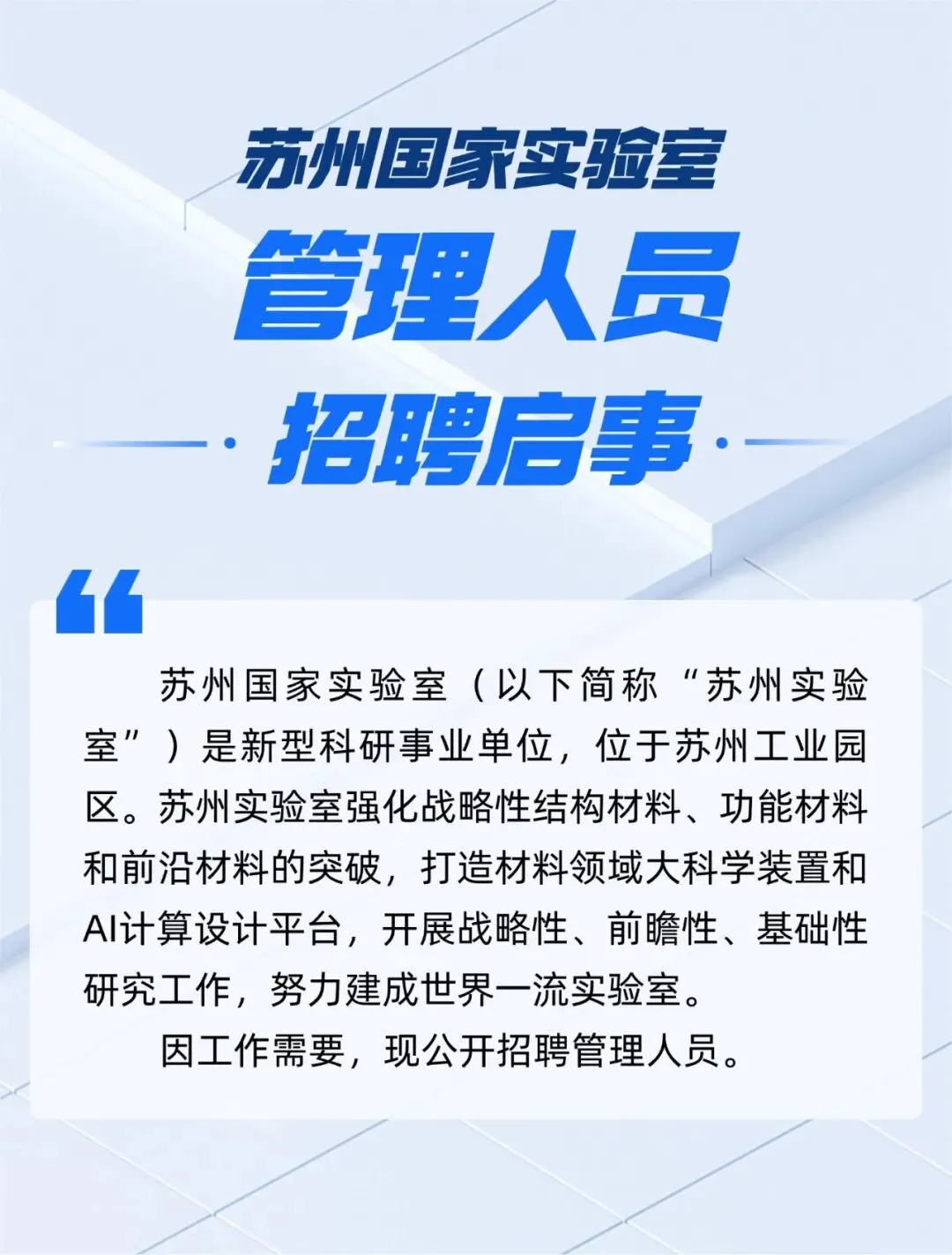 >苏州国家实验室管理人员招聘启事
