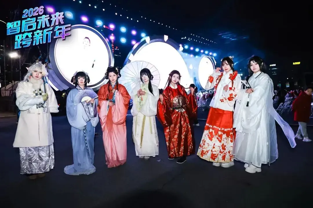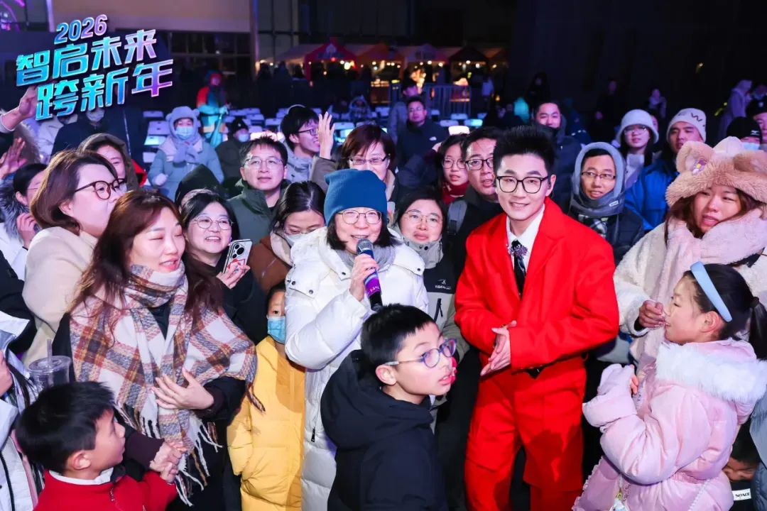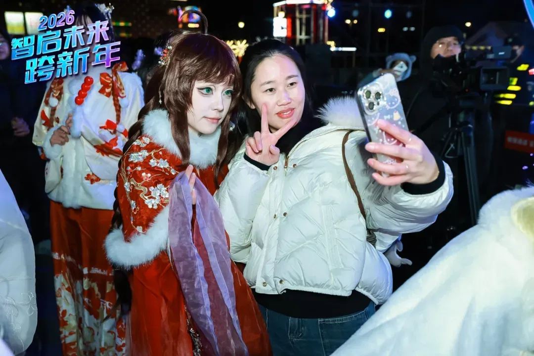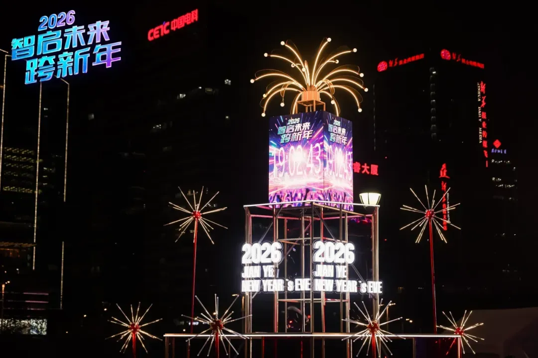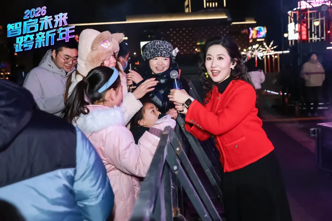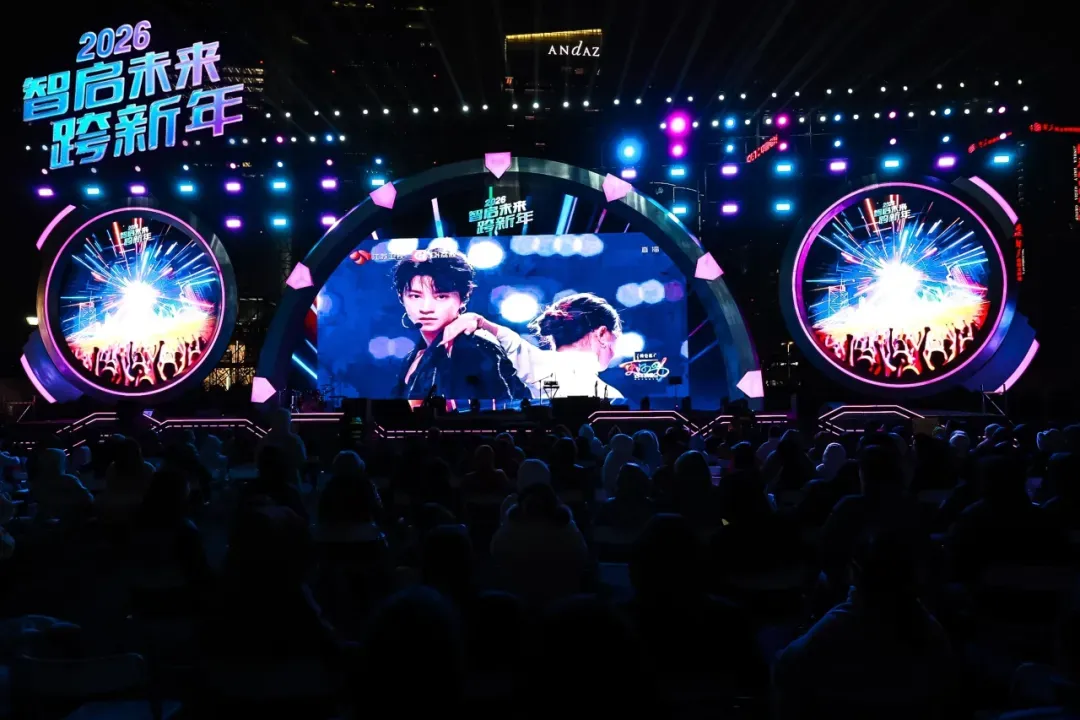 无人机点亮天幕。1000架无人机腾空而起,流光织就璀璨天幕,光影流转间引得全场惊呼不断,在这激动人心的时刻,全场倒计时,在大家的拥抱欢呼中,在漫天欢呼声中,我们一起迎接崭新的2026。