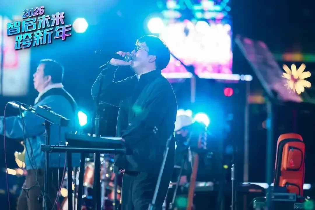 当晚7点,舞台区聚满了期待的人群,江苏音乐广播超人气主持邓煌、杭程等悉数登场,《棉花糖》《我的未来不是梦》等一首首金曲氛围感十足,带来满满回忆杀;一曲《新年快乐》更是瞬间点燃全场,引发千人合唱,观众挥舞手机闪光灯,汇成一片流动闪耀的星河。