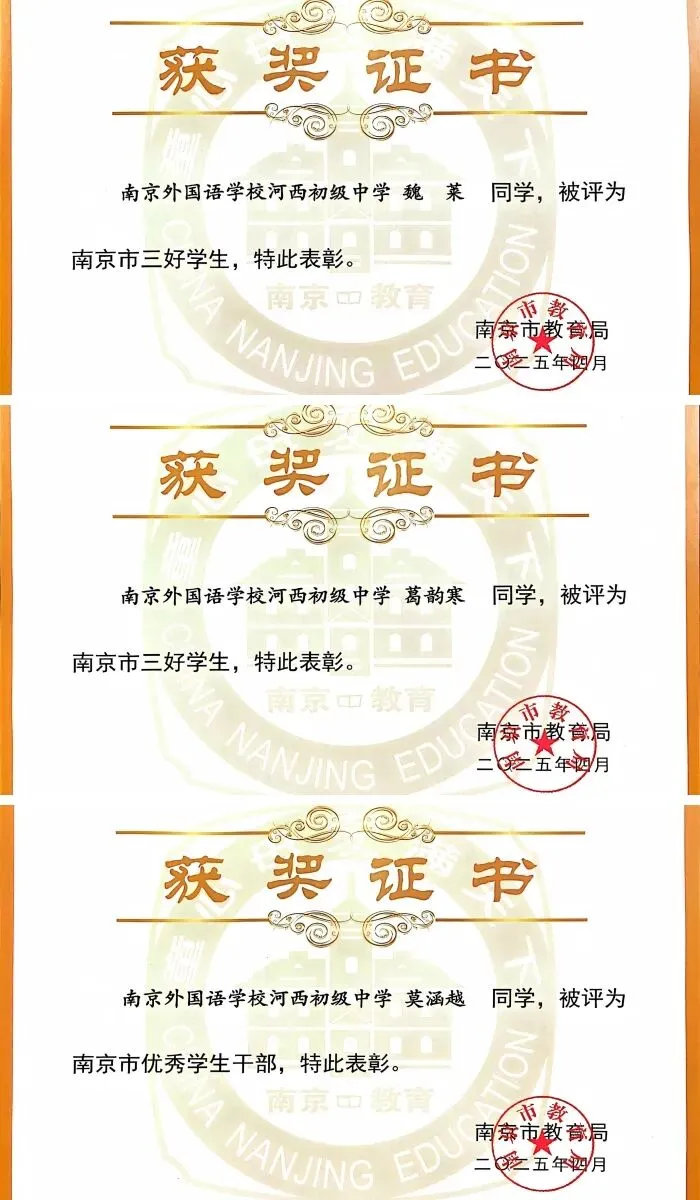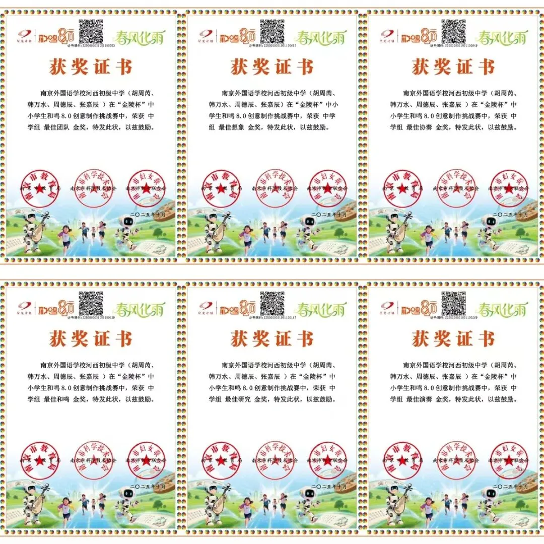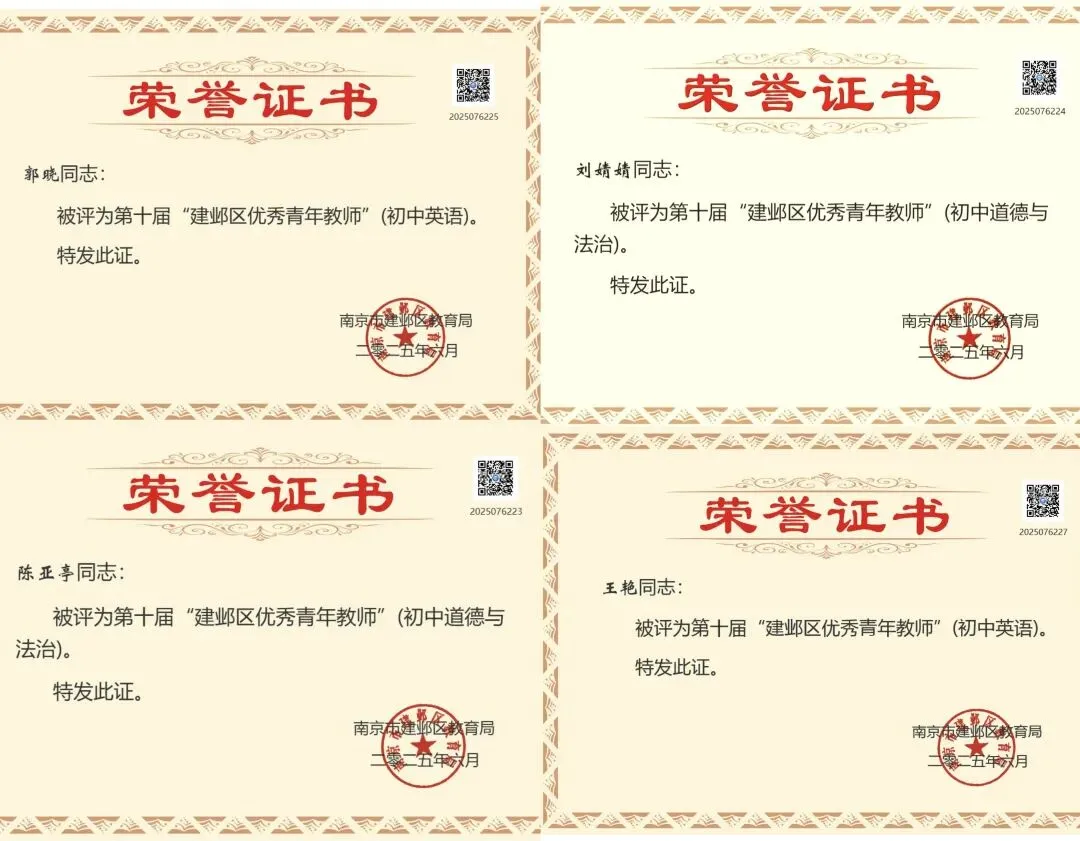在2025年建邺区四个一竞赛中,张嘉辰、谢歆然获区一等奖;