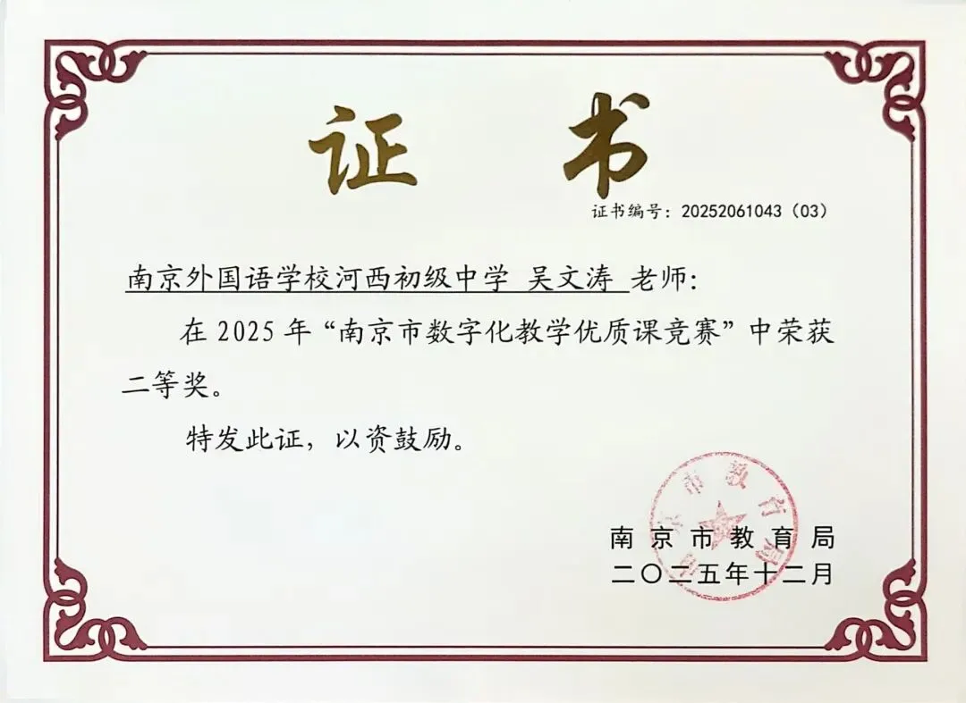 在2025年南京市中小学生信息素养提升实践活动(数字创作竞赛)中,刘晟楠获市二等奖;