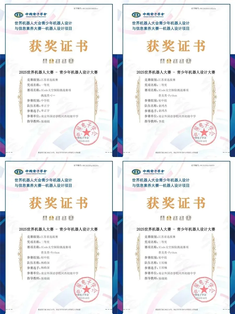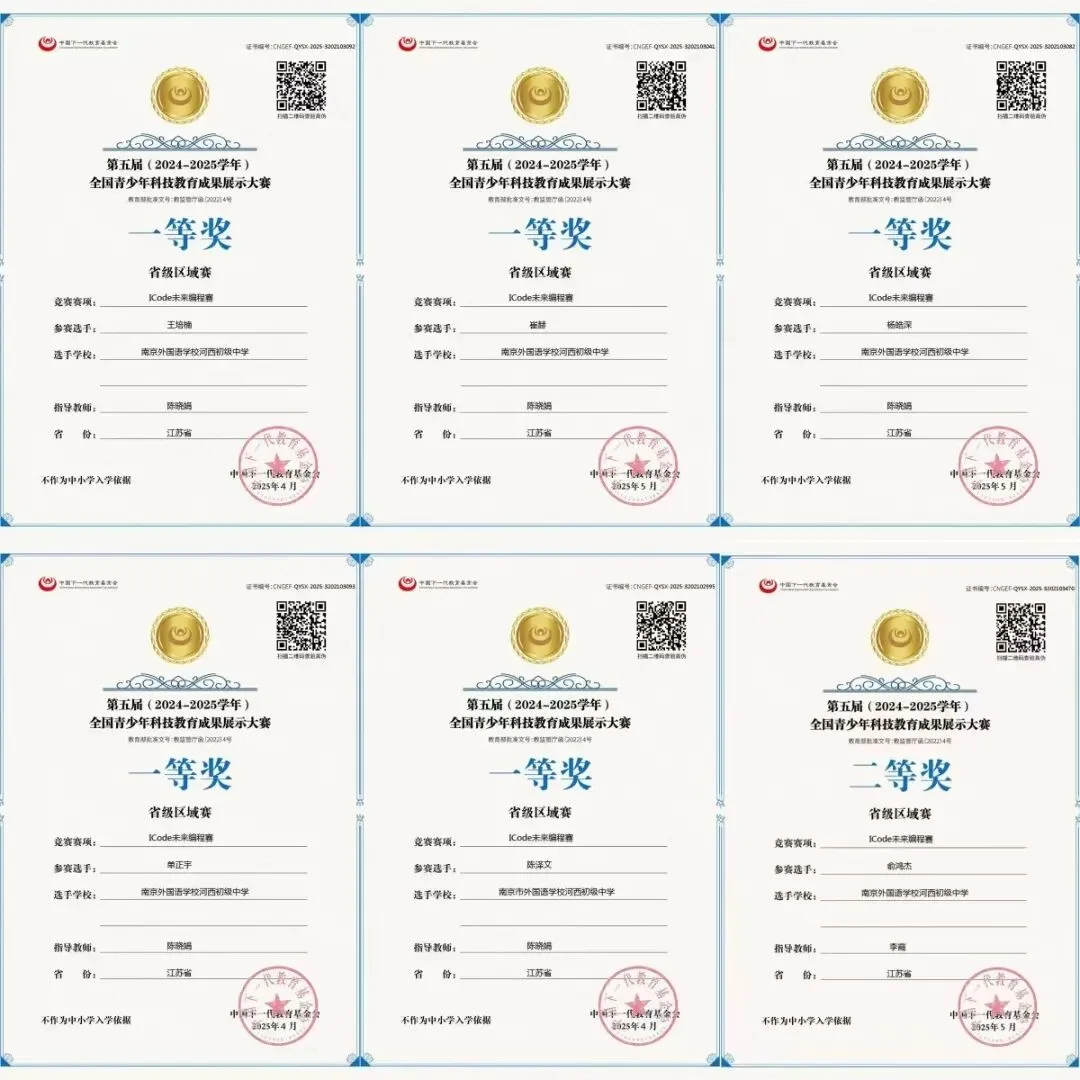 在2025年南京市中小学生信息素养提升实践活动中,姚品辰获市三等奖、区一等奖;