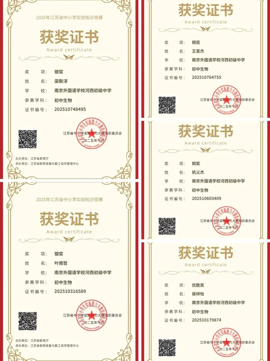 在2025年建邺区中小学生劳动技能大赛(初中劳动)中,马歆妤等3人获区一等奖;