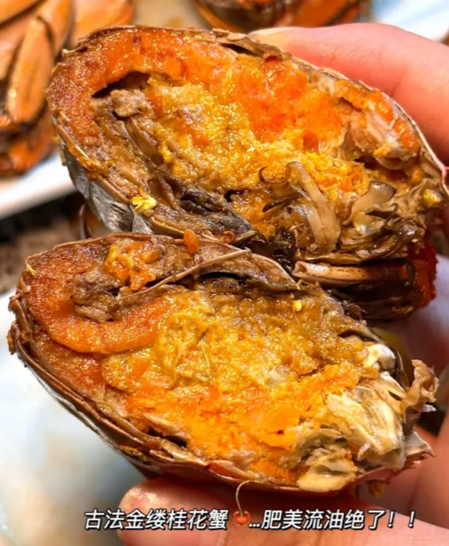 古法金缕桂花蟹:秋蟹肥美,鲜甜入味带桂花香。