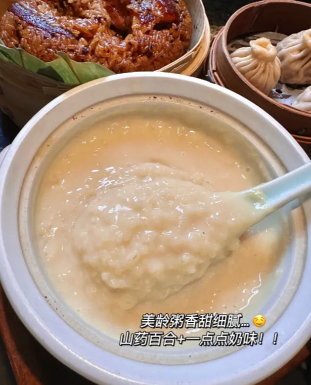 民国美龄粥:偏甜落胃,百合山药中透着淡淡奶香。