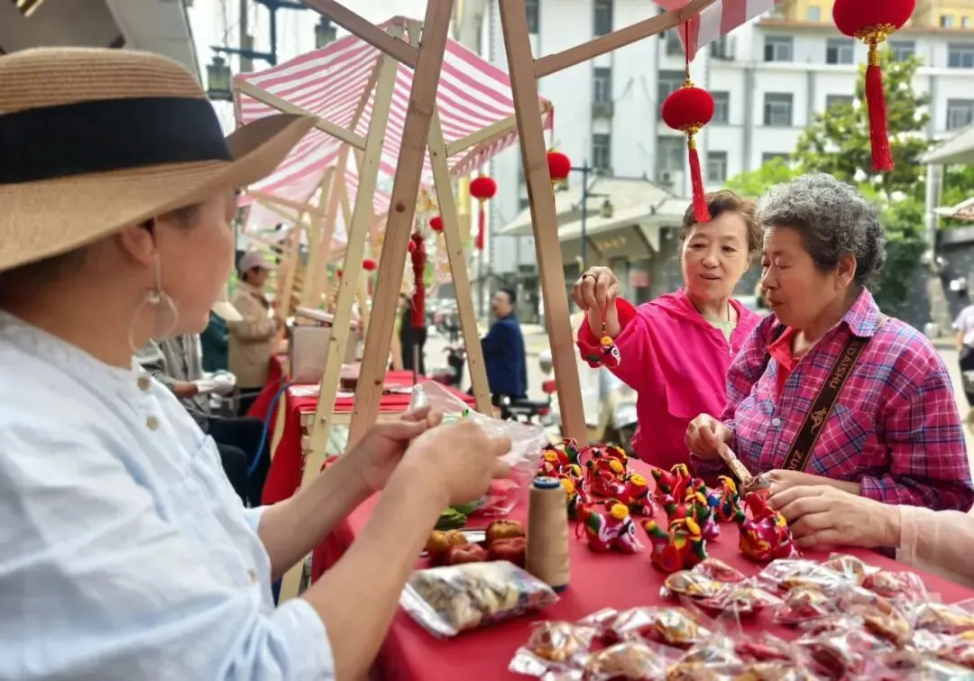 “潮”在国潮——户部山“南山雅集”、回龙窝“开新市集”,非遗香包、剪纸、泥塑邂逅现代设计,传统技艺成了年轻人爱不释手的潮玩好物。