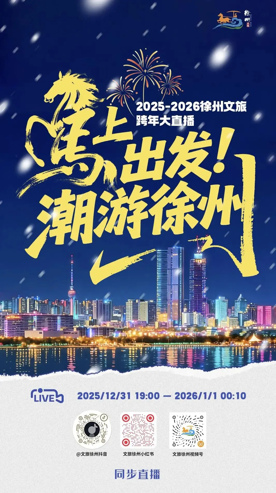 2025年12月31日19:00至2026年1月1日00:10,“‘马’上出发 潮游徐州”大型跨年直播将准时上线。