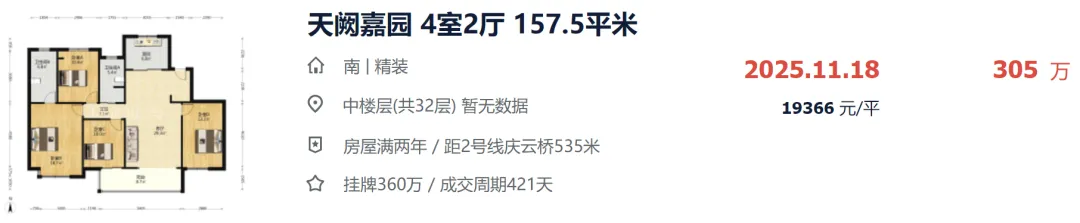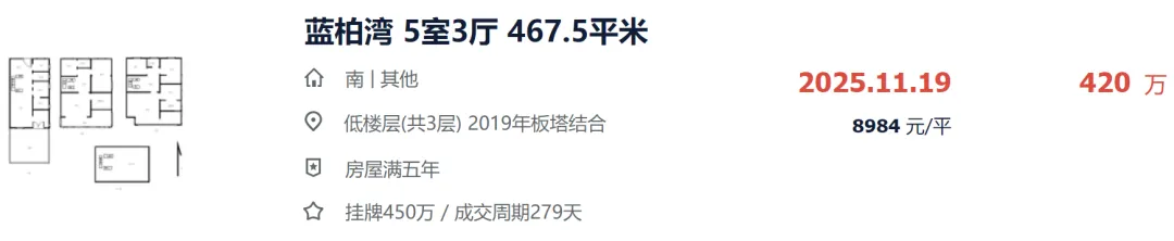 铜山城区风双山北麓的蓝柏湾别墅,467.5平大别墅,总价420万。铜山区大学路板块国基城邦别墅,270平,总价400万,单价14836/㎡。上房才一年的美的君兰湖山,6层叠墅的中层200平户型,总价368.5万,单价18423/㎡。还是比较保值的!总价超300万的成交房源里,唯一的高层住宅是天阙嘉园(美的旭辉天阙),157.5平精装户型,总价305万,单价19366,近2年来价格保持稳定。新城区大龙湖东岸的湖东道云玺,成交首套二手房,155.8平户型,总价272.6万,单价17500。和2年前新房毛坯均价18800比,已经相对较保值了。盘点发现,11月成交的总价超过200W的房源,主要为别墅和核心区的洋房,小高层/高层只有市中心的天阙、风尚米兰、海尔智慧城、锦绣湖畔,云龙湖边的滨湖花园3期,新城区核心的招商臻园、招商雍华府、绿地翠庭,东区核心的万科翡翠之光、红星云龙金茂悦,这10个小区。都是核心区的好房!