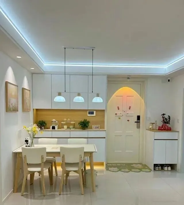 吊顶是最普通的双眼皮 , 射灯往墙上一打 , 氛围感直接拉满。
