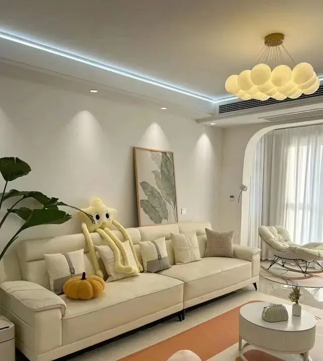 沙发是米白色奶油风的 , 确实好看。