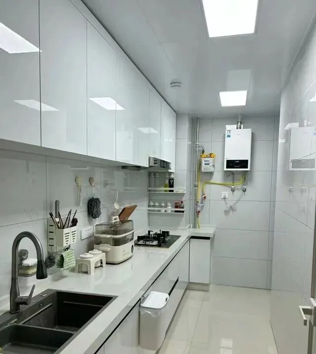 柜子全是肤感白 , 颜色统一了 , 视觉上干干净净的 , 不乱。