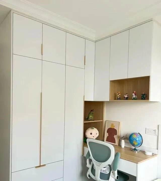 房间面积小 , 做了转角书桌的设计。