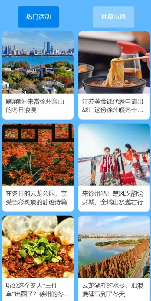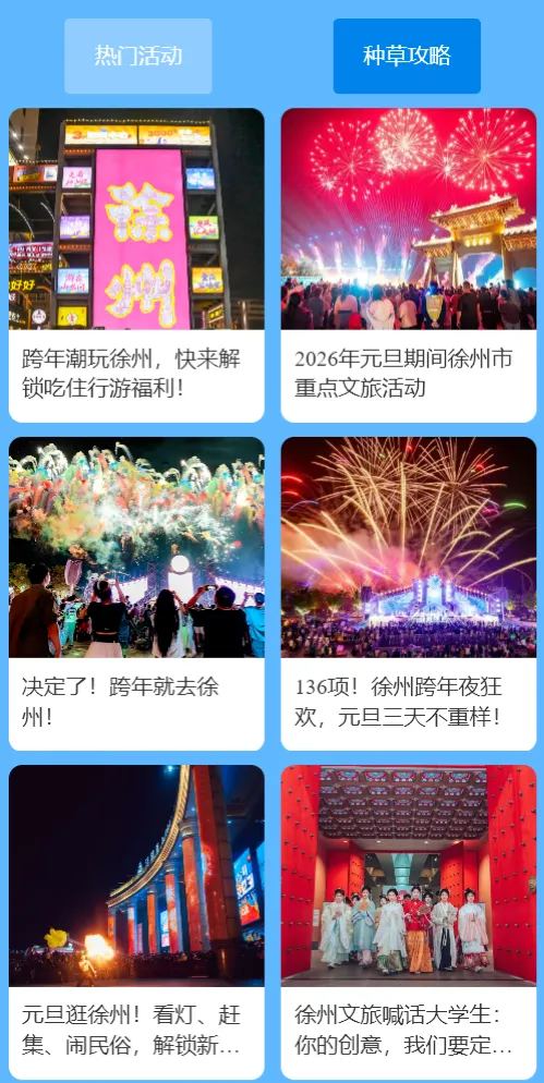 “国潮汉风 快哉徐州”板块深挖徐州历史底蕴,立足两汉文化发源地核心优势,推出汉文化主题游。该板块以视频形式介绍了徐州博物馆、狮子山楚王陵、徐州汉兵马俑等地标景点,助力游客高效获取信息,形成从行前兴趣培养到行程落地的闭环设计。