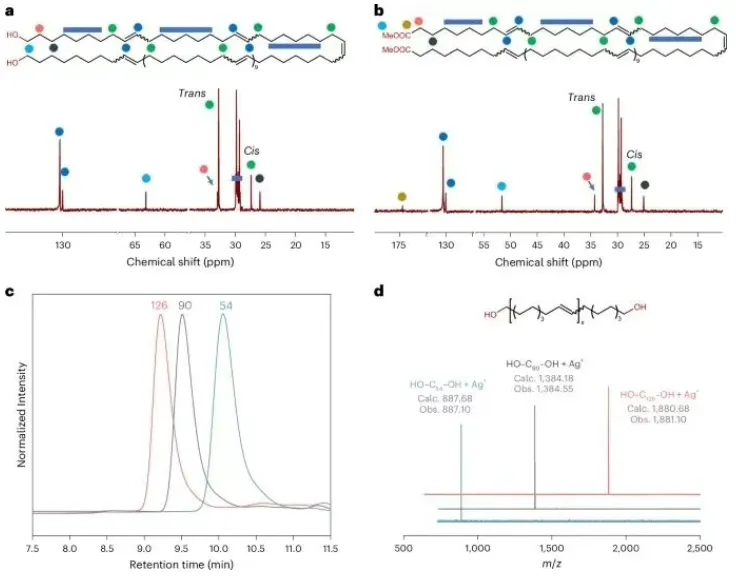 图 4. 离散不饱和超长二醇和二酯的表征
