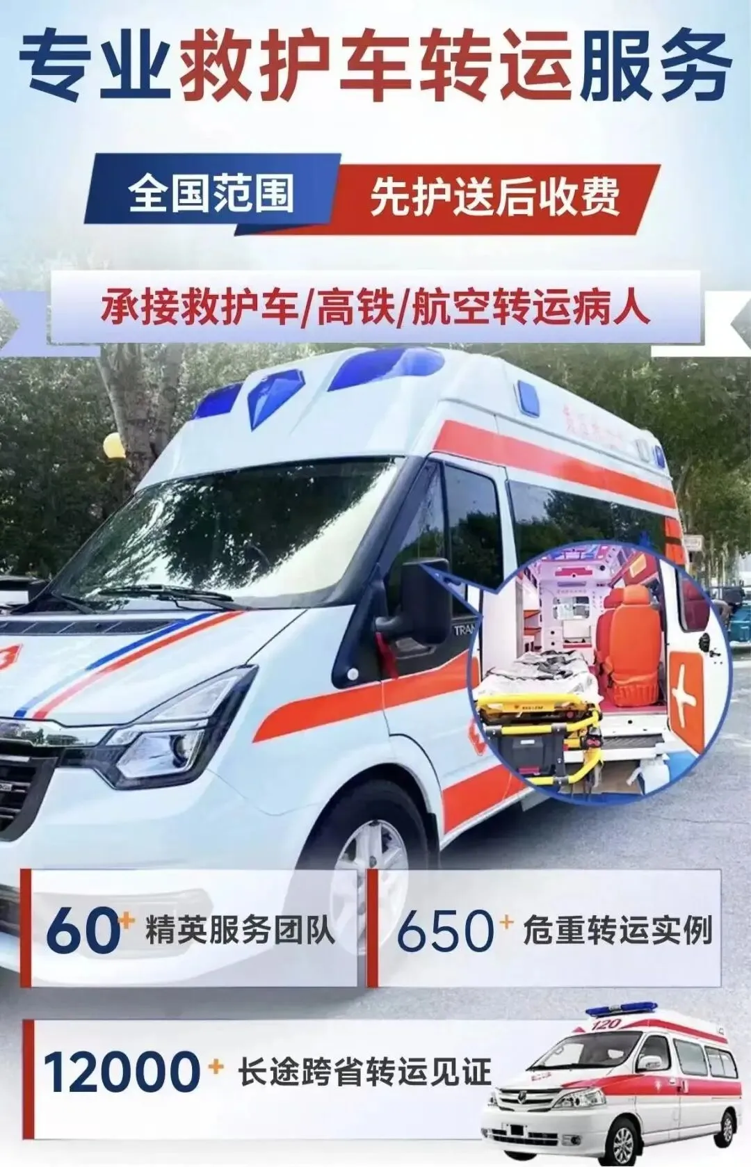 我们以专业的医疗水准和用心的服务态度,为每一位患者提供安全、舒适的转运体验。