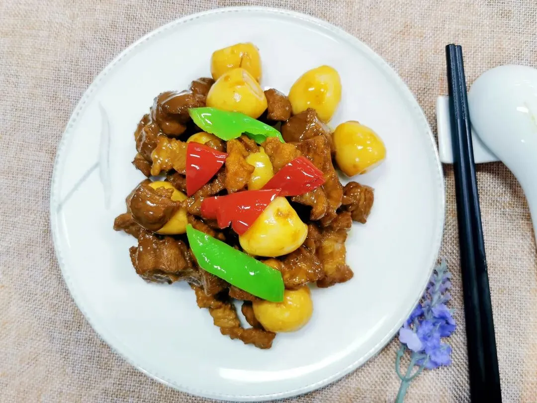 配料:肉丁95克 鹌鹑蛋25克