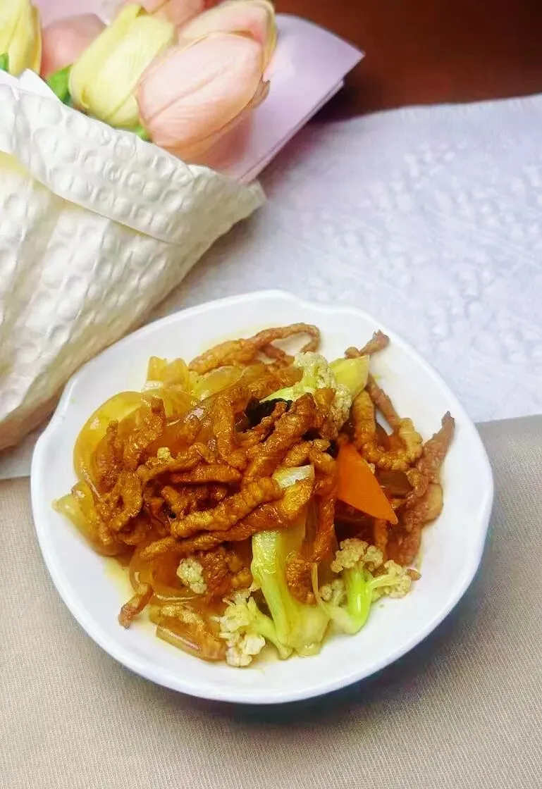配料:肉片20克 菜花100克