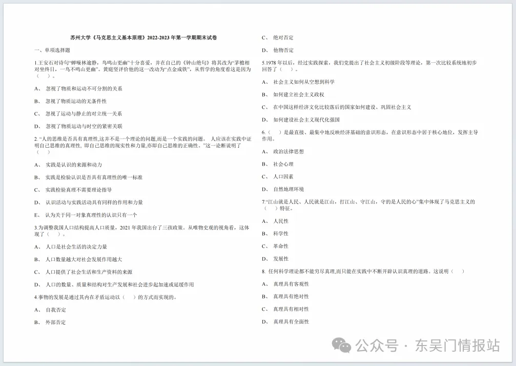 可以随时回复【东吴门情报站】公众号“真题”查看最新的真题哦!