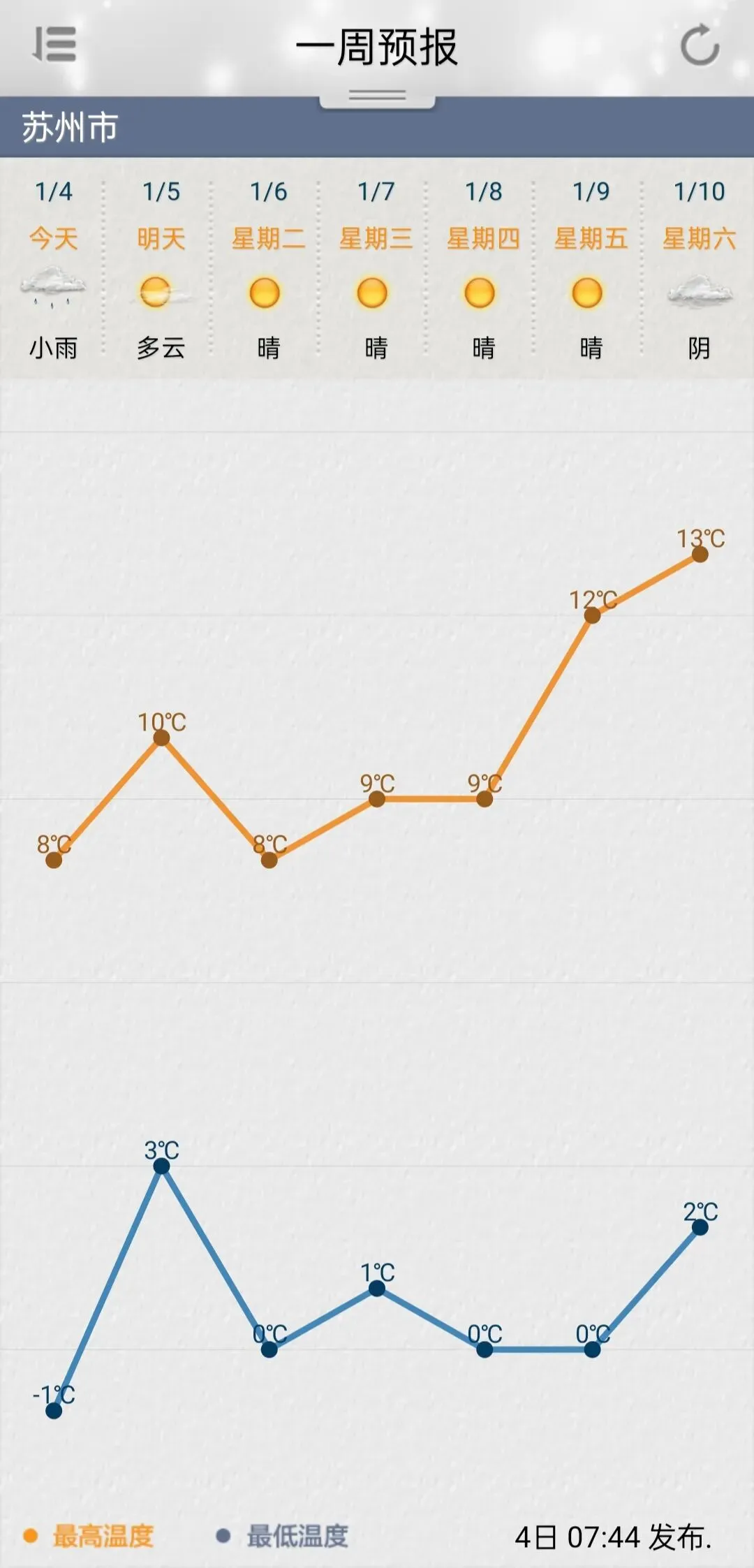 苏州最低气温只有零下0.9℃