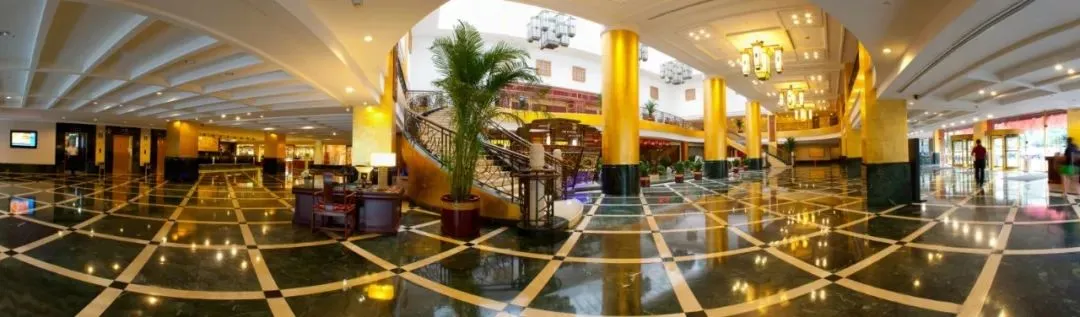 进入酒店内,霸气的金色石柱最先映入眼帘,石柱后清澈的池塘,古色古香的池中盆栽和池中的小鱼相映成趣。