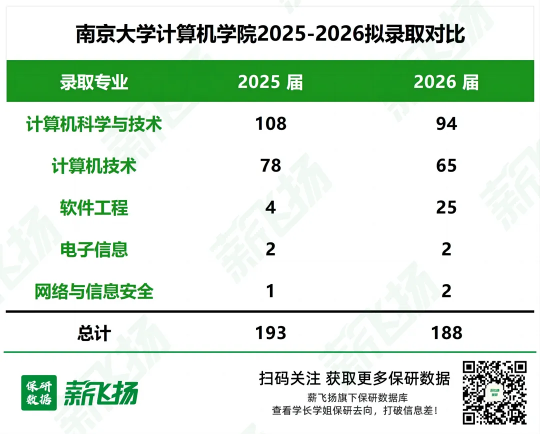 作为国内历史悠久的计算机院系,南大计算机学院 2026 届拟录取 188人(硕士 144 人、直博 44 人),入营生源以中上游 985、头部 211 为主。