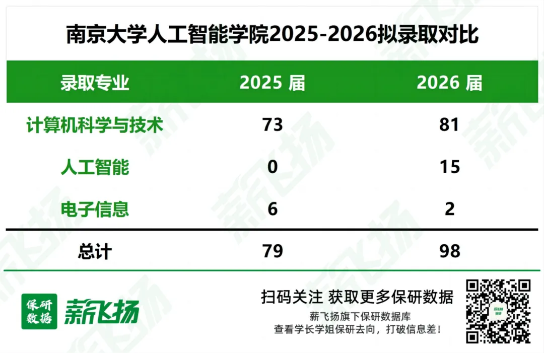 南大人工智能学院依托学校A+学科计算机科学与技术建立,聚焦国家AI战略需求。2026届共录取推免生98人,含硕士82人、直博16人。