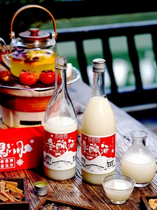 当空气里浮起那层清冽的甜,苏州人便知道,时候到了——冬酿酒熟了。于是,老街的酒坊前开始排起长队,多是熟稔的老苏州,拎着各式瓶罐,用软糯的方言闲话家常,等师傅掀开缸盖,用长柄竹勺“哗啦”一声舀出温润的暖流。这叫“拷”酒,是这座城年复一年,充满烟火气的冬日仪式。老苏州人爱说:“有铜钿,吃一夜;呒铜钿,冻一夜。(有钱就买冬酿酒喝,没钱(喝不上冬酿酒)就要冻一夜。)”一壶甜酒,便松了苏州人在寒冬皱起的眉头。一口一口,数着九,消着寒,冷意也就在温润的甘甜里,一点一点化开了。冬酿酒,一冬一酿,用新收的糯米与桂花,在秋末初冬时郑重封入陶缸。酿酒人酿的,与其说是酒,不如说是时间本身。他们守着时节,循着古制,将当地风物的本味,和对时令流转的遵循,乃至对生活的热望,一并封存,然后交由光阴慢慢去酝酿、去成全。因此,喝冬酿酒,喝的是一段被窖藏得醇厚香浓的时间。倒一杯,清甜的米香便漫开来。轻抿一口,醇滑的酒液温柔地漫过舌尖,没有冲劲,只有恰到好处的微醺。它简单、纯粹,没有勾兑的稀薄感,没有添加的杂味,只有本有的甘润,温暖着冬日。如今,我们虽无法亲至老巷排队“拷”酒,但那口传承百载的姑苏冬味,已为您封存妥当。这壶来自“苏州桥”的冬酿,邀您一同举杯,细细品饮这时节慷慨的馈赠。