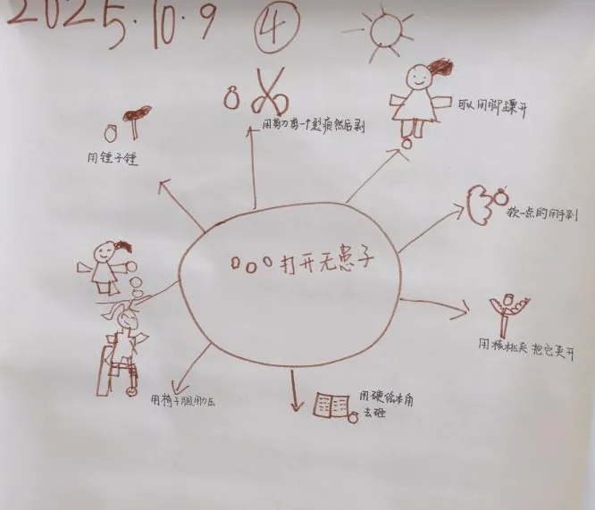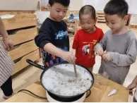 果肉果核分别分开有什么用处?幼儿在前期的探究中获得一些经验,对无患子有一定的认识,他们知道果皮加水可以产生很多泡泡。于是,加水熬煮可以当洗手液。