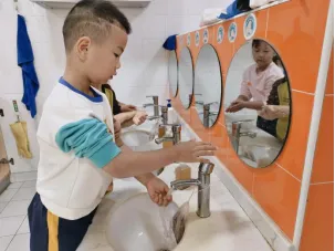 洗手液投放到了盥洗室中,孩子们满心期待地准备试用,然而问题接踵而至。