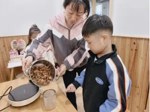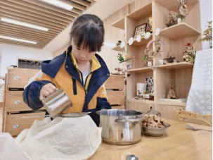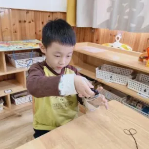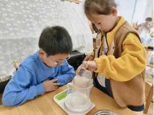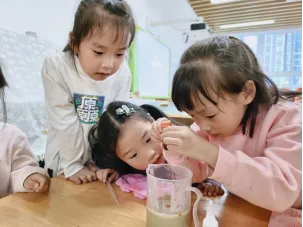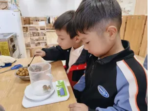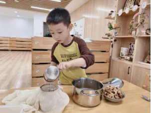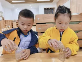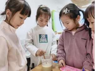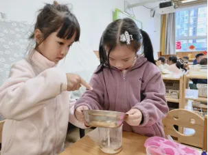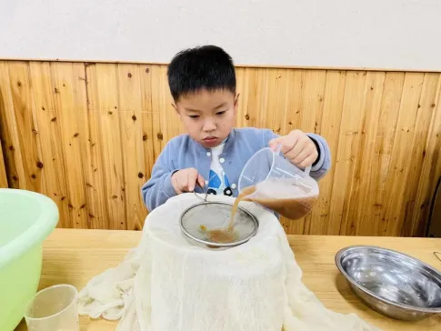孩子们对制作无患子洗手液非常感兴趣,在遇到问题时能与同伴教师一起积极探索,寻找答案。在探究过滤环节时,孩子们通过实际操作、观察过滤效果进行对比记录,选择最佳过滤工具。我们始终要做孩子们的支持者,合作者和引导者,为其提供最大的支持,促进孩子们新经验的提升。