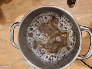 孩子们通过细致的观察和实验发现,用水煮无患子时会产生更丰富的泡泡,泡泡出现速度较慢,同时水会变成褐色。大火煮开后,要用小火慢慢熬煮大约一个小时。