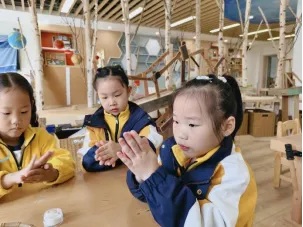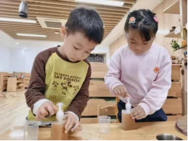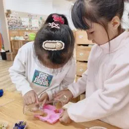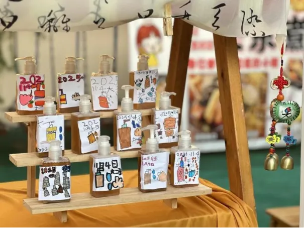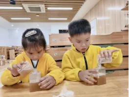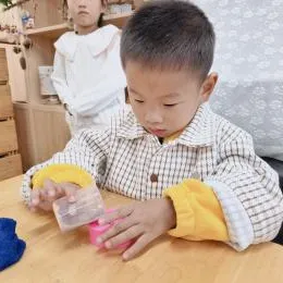 孩子们兴致勃勃地开始制作,洗手液1.0制作完成啦。