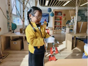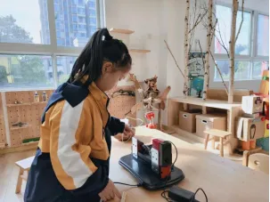那怎么才能知道 100g 是多少呢?用什么东西称呢?孩子们积极性高涨,在科学区寻找电子称、量杯等工具,孩子们一起探索了关于《认识测量工具》的集体活动。