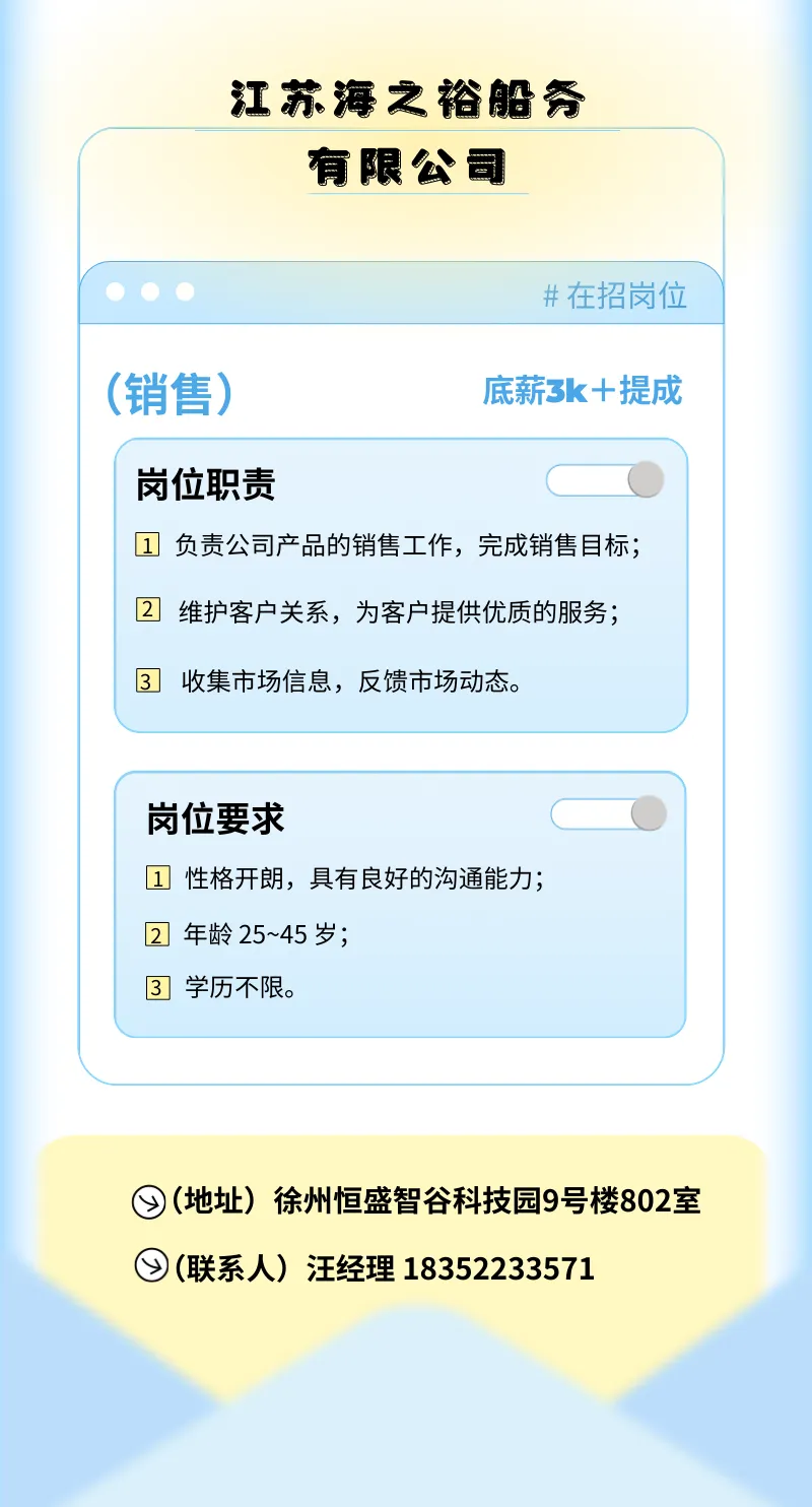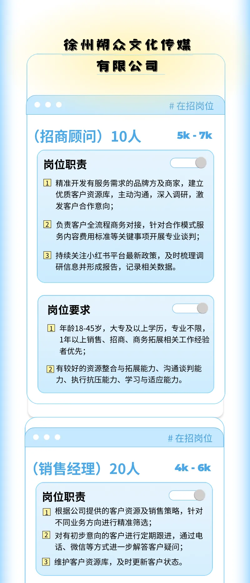 徐州恒盛智谷科技园园区企业招聘合集公告