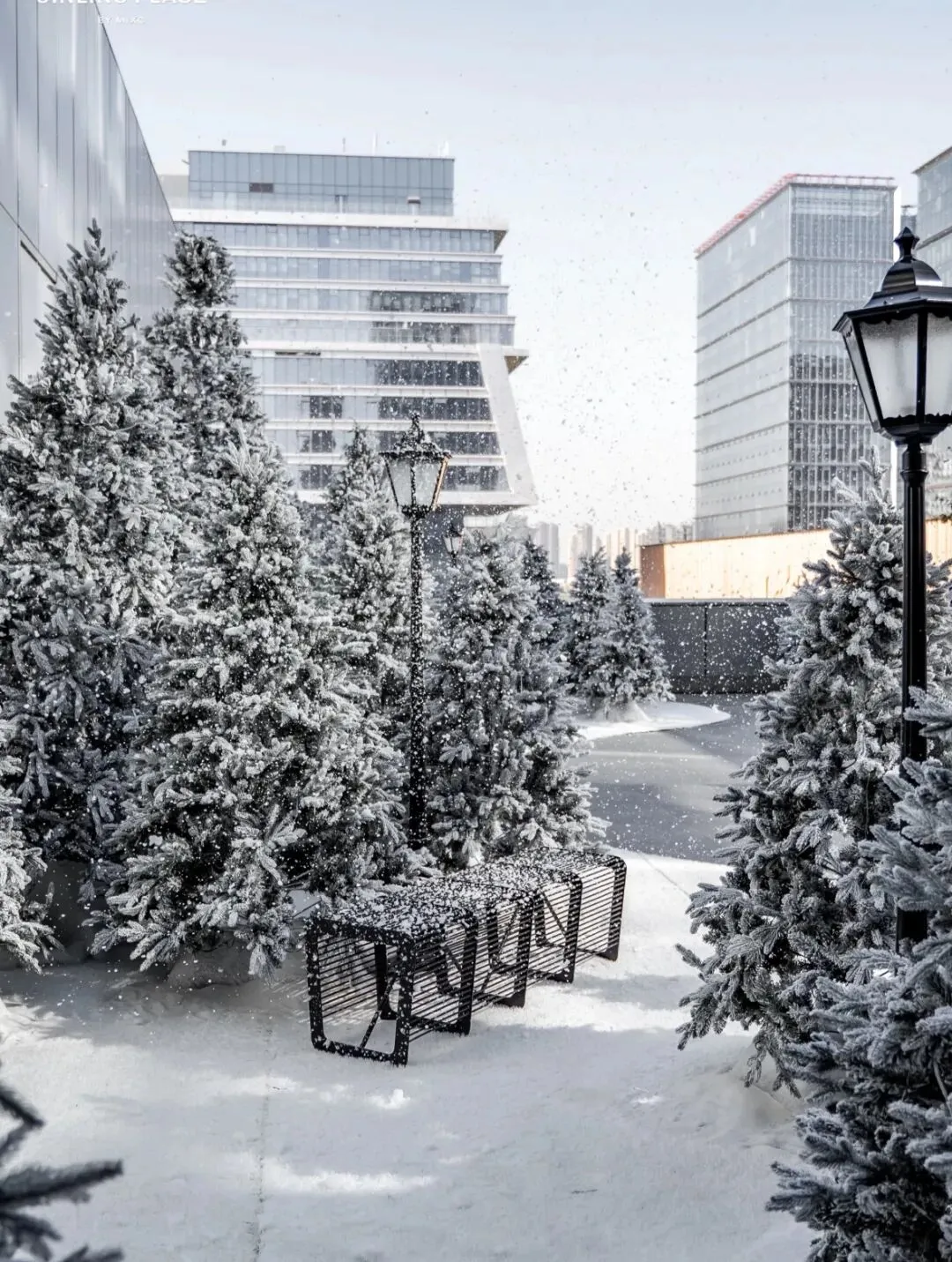 >冬日童话照进现实!南京金陵天地1000㎡雪景小镇+雪松森林,冬日氛围感拉满!