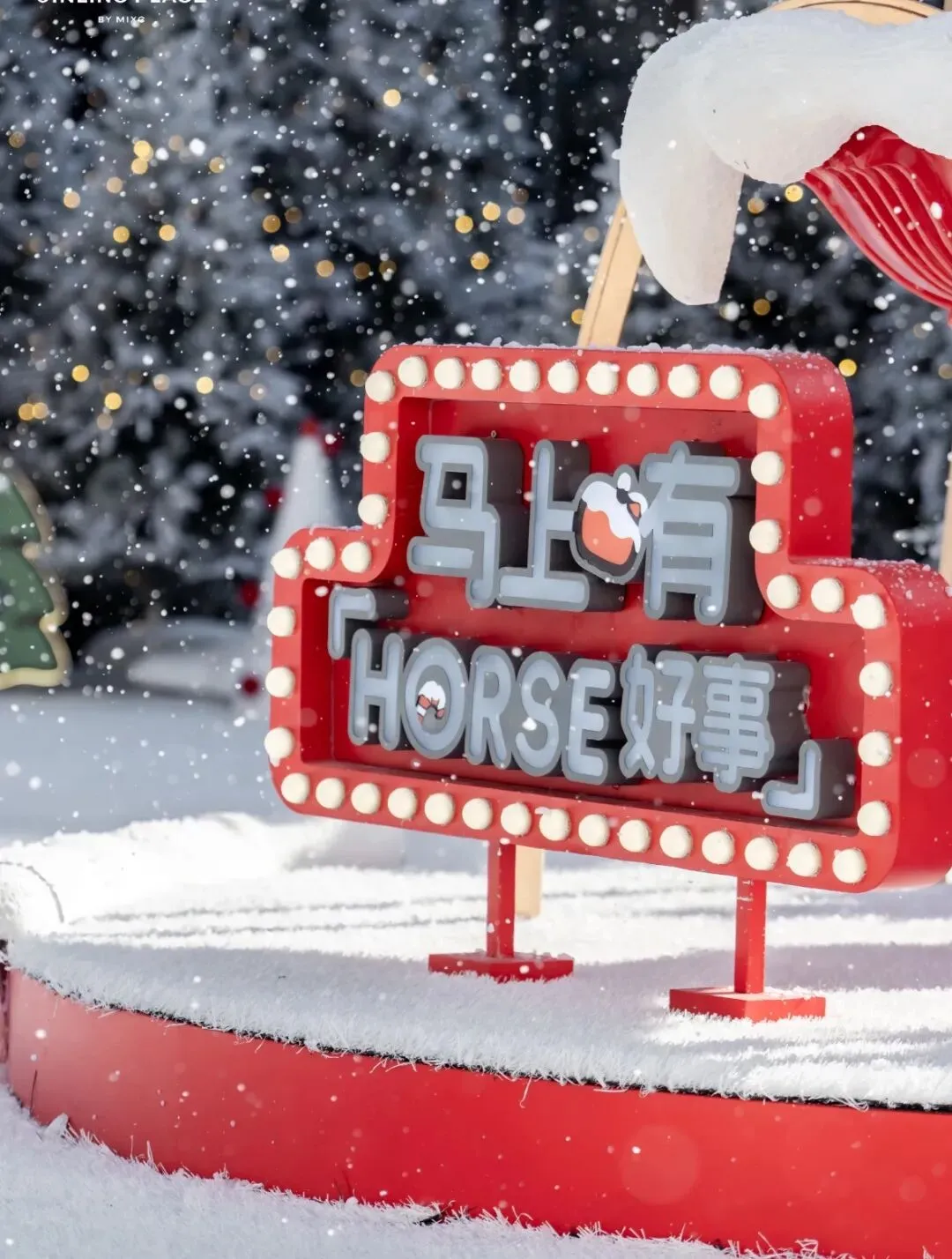 可爱的原创IP小马暖崽登场,举着小牌子“马上下班,立刻走”。像是在提醒所有人已入冬,回家开启过冬模式。也可以来这里看一场雪景,开启冬日浪漫模式。