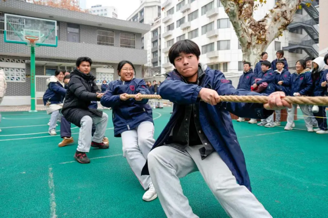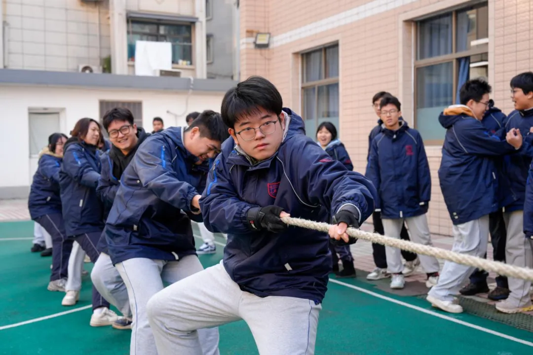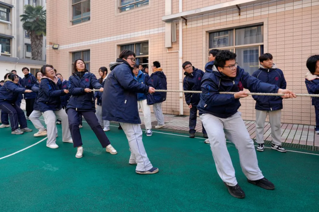 “一二、一二!”整齐的号子声中,拔河赛场化为凝聚力的熔炉。各班队员紧握长绳,倾身向后,每一次发力都是对集体荣誉的倾力守护。这不仅是力量的比拼,更是团队策略、信任与坚持的实践课堂。国际教育中的“Collaboration(协作)”与“Resilience(韧性)”,在此刻得到最真实的锤炼。