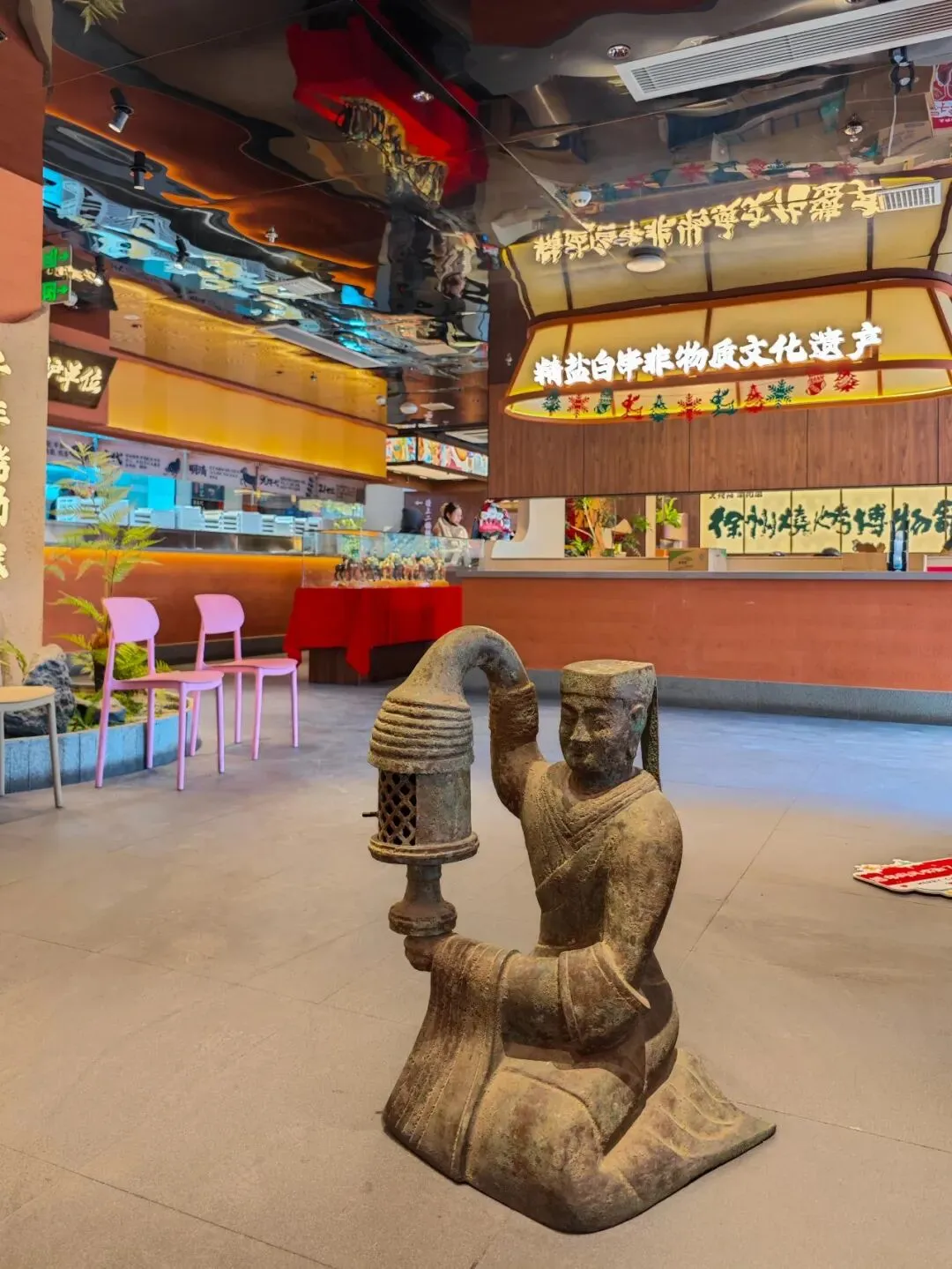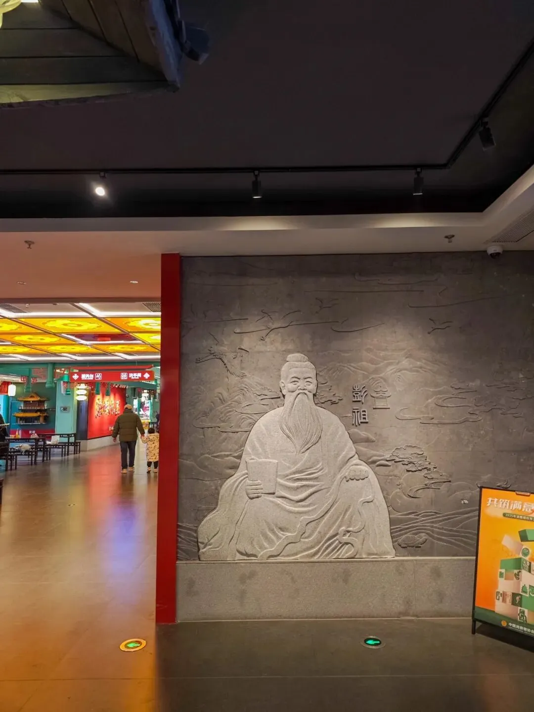 迎门墙壁上刻有彭祖像。彭祖被尊为中华烹饪鼻祖,其饮食智慧是中华食疗与养生文化的源头 。
