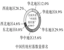 10.中国传统村落分布广泛,具有明显的区域特征,请根据【材料二】说说我国传统村落分布的特点。(4分)