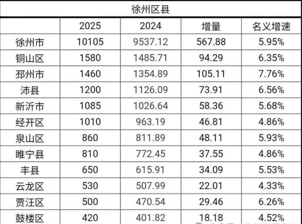 元旦前,徐州召开经济工作会议,会上重磅宣布:预计全年地区生产总值增长6%左右,主要经济指标增速高于全省平均。 按照这个增速,徐州2025年GDP过万亿已无悬念。2024年徐州全市GDP达到9537.12亿元,按照6%计算,今年徐州GDP约为10109亿元。